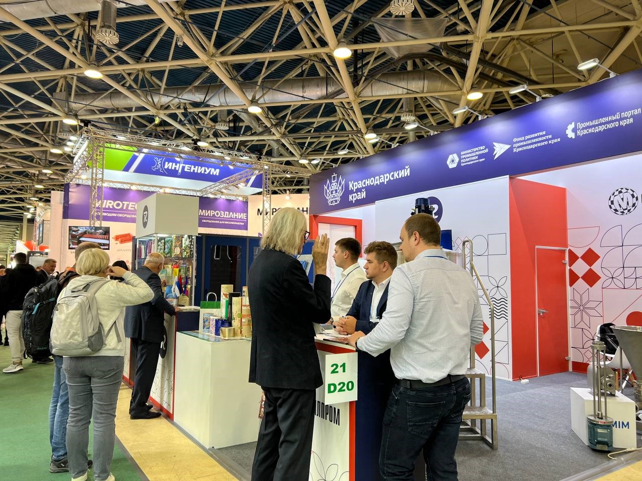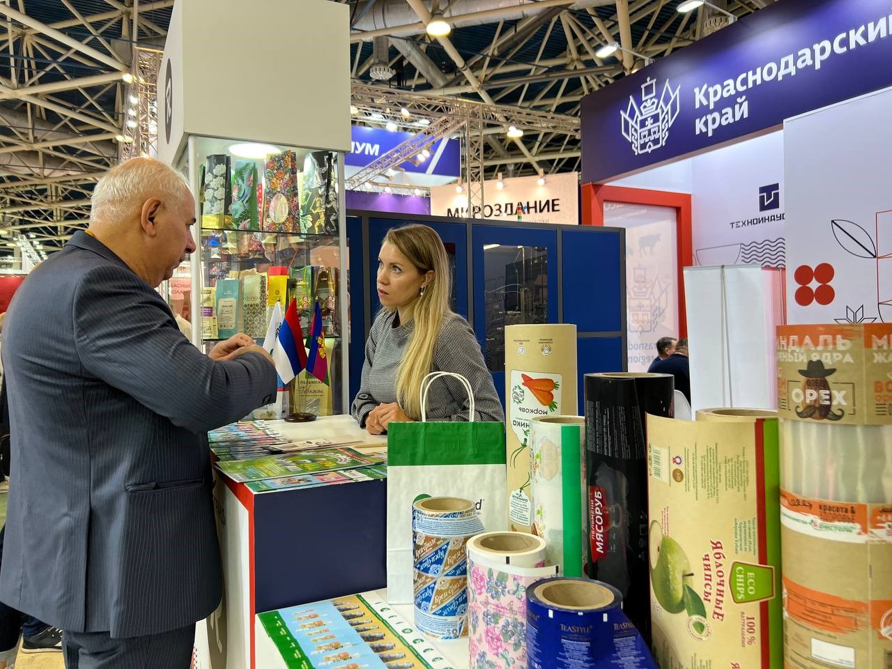 В этом году на коллективном выставочном стенде Краснодарского края свои возможности презентовали 3 предприятия-производителя: ООО «Техноиндустрия», оборудование для выдува ПЭТ-тары; ООО «Металлпром», оборудование для пищевой промышленности; ООО «РОЗГРАНД» (ТМ «R»), упаковочные материалы.