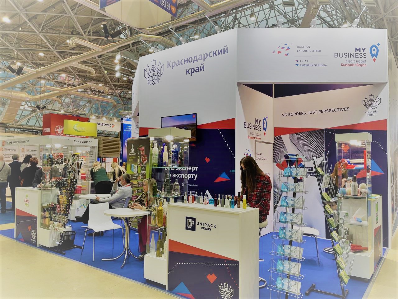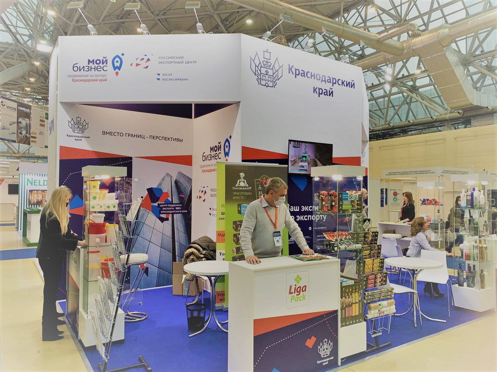 В результате взаимодействия институтов развития Краснодарский край был представлен более масштабной экспозицией с широким ассортиментом продукции региональных производителей.