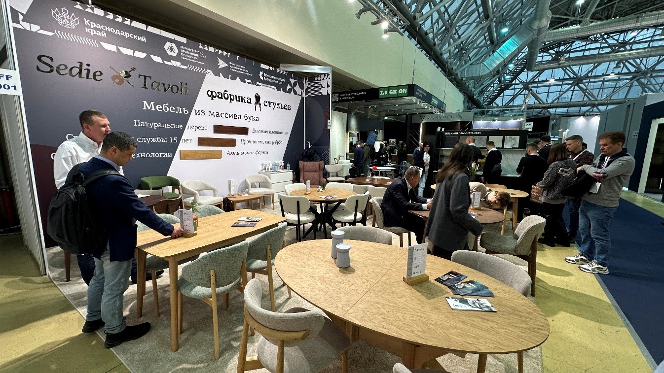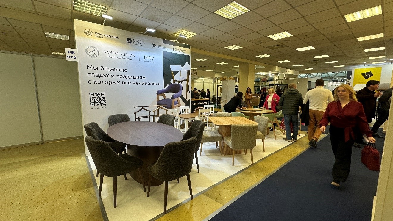 На коллективной выставочной экспозиции Краснодарского края свою продукцию презентовали 9 региональных предприятий: ИП Зацаринная Софья Олеговна (ТМ «Мебель МАЙ», «ODES»), столы и стулья из массива бука; ООО «Омега» (ТМ «Sedie Tavoli», «Фабрика Стульев»), столы и стулья; ООО «Кресла Юг», кресла для театральных и конференц залов; ИП Шаповалов Сергей Анатольевич (ТМ «Ветторе»), мягкая мебель; ООО «ЮгСпецМебель» (ТМ «Отельру.рф»), мебель для отелей; ИП Чечелян Алина Сергеевна (ТМ «Алина Мебель»), столовые группы, корпусная мебель; ИП Артамонов Михаил Васильевич (ТМ «Лаама»), мягкая мебель; ООО «Оптснаб» (ТМ «Furnitrade»), театральные кресла; ИП Мирошниченко Олеся Георгиевна (ТМ «Sofia Glinova»), корпусная мебель.