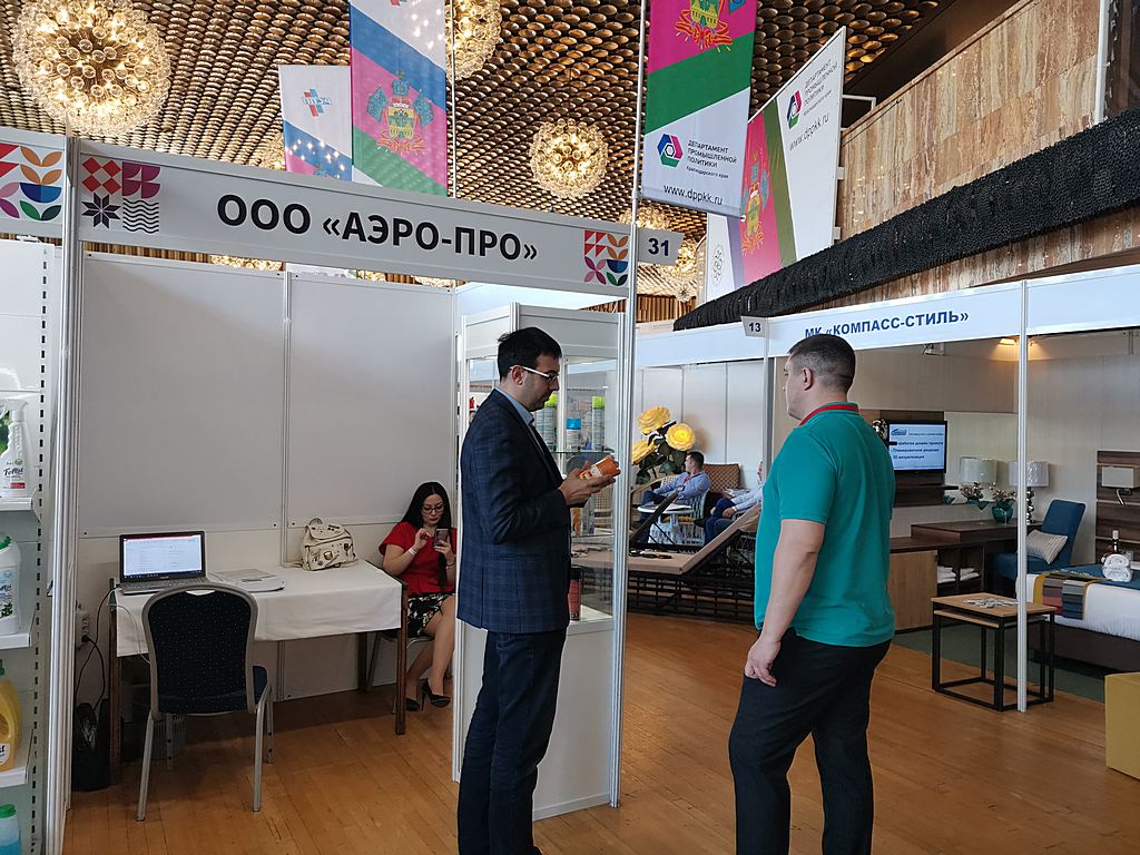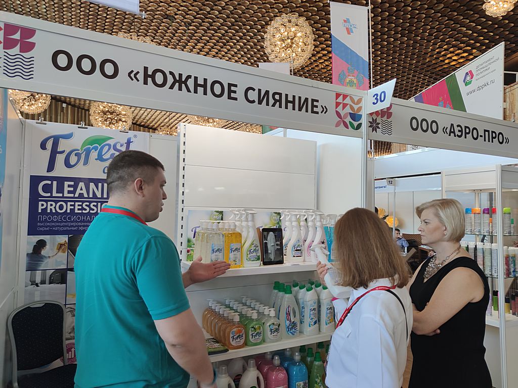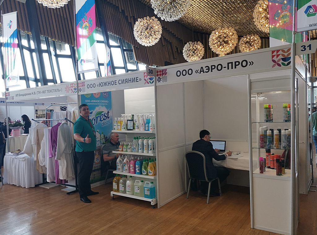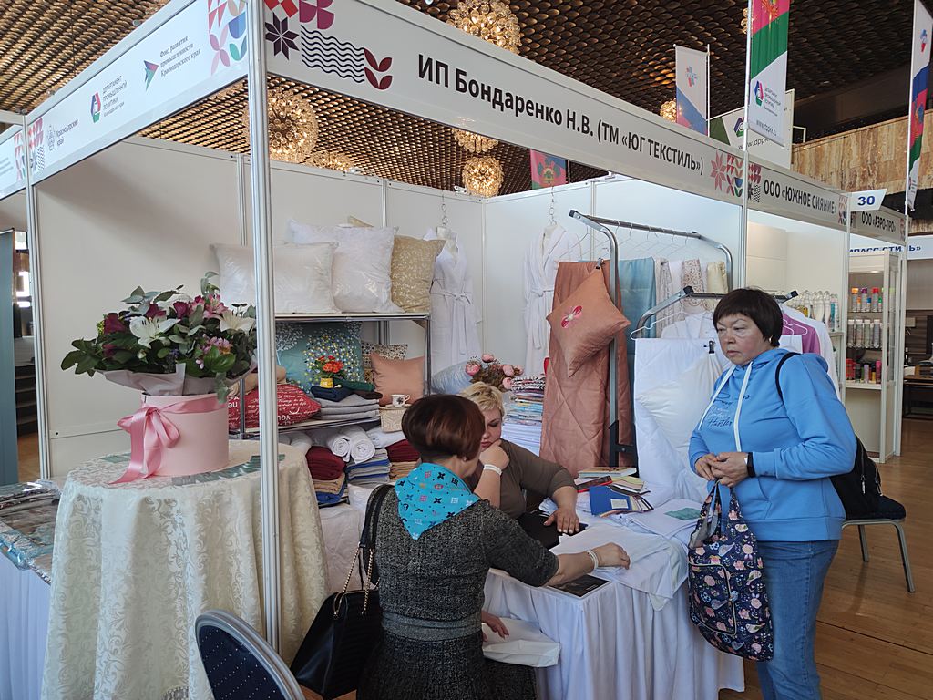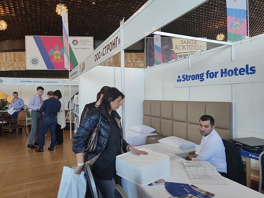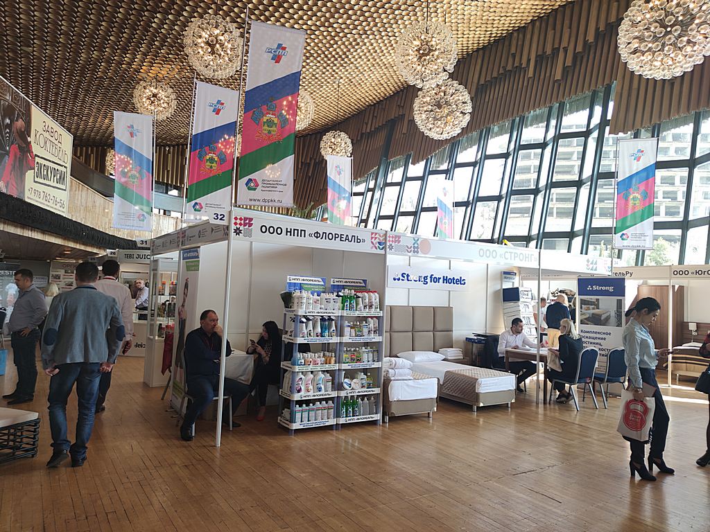 Мебель, текстиль для гостиниц, специализированную бытовую химию, а также средства санитарной гигиены собственного производства презентовали следующие кубанские предприятия ООО «ЮгСпецМебель», ООО «СТРОНГ», ИП Бондаренко Н.Е. (TM «ЮГ ТЕКСТИЛЬ»), ООО НПП «Флореаль», ООО «Южное сияние», ООО «АЭРО-ПРО».
