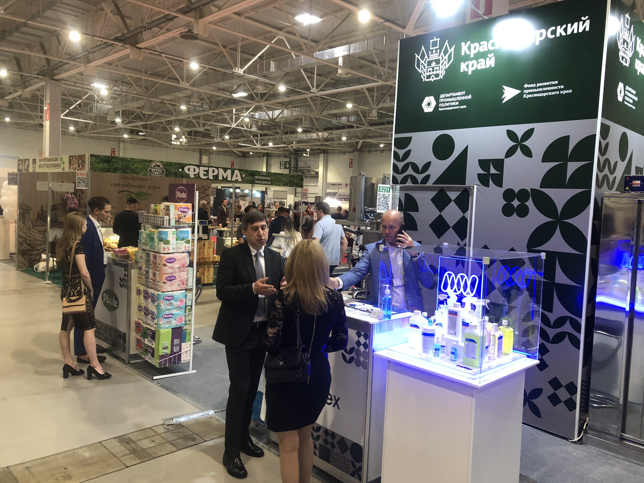 На коллективной выставочной экспозиции Краснодарского края свою продукцию представили семь промышленных производителей региона под брендами «БелКрас» (ООО «БелКрас-М»), «Plushe» (ООО «Кубань-Папир»), «Medlex» (ООО «Медлекспром»), «ПРОМИНКОМ» (ООО «Промышленно-инженерная компания»), «IDEA TECHNOLOGY» (ООО «РУСС.ПАК»), ООО «Аполинария», ООО «Полипринт».
