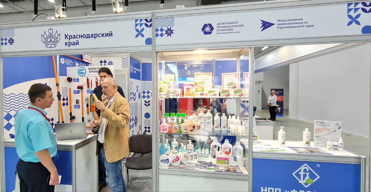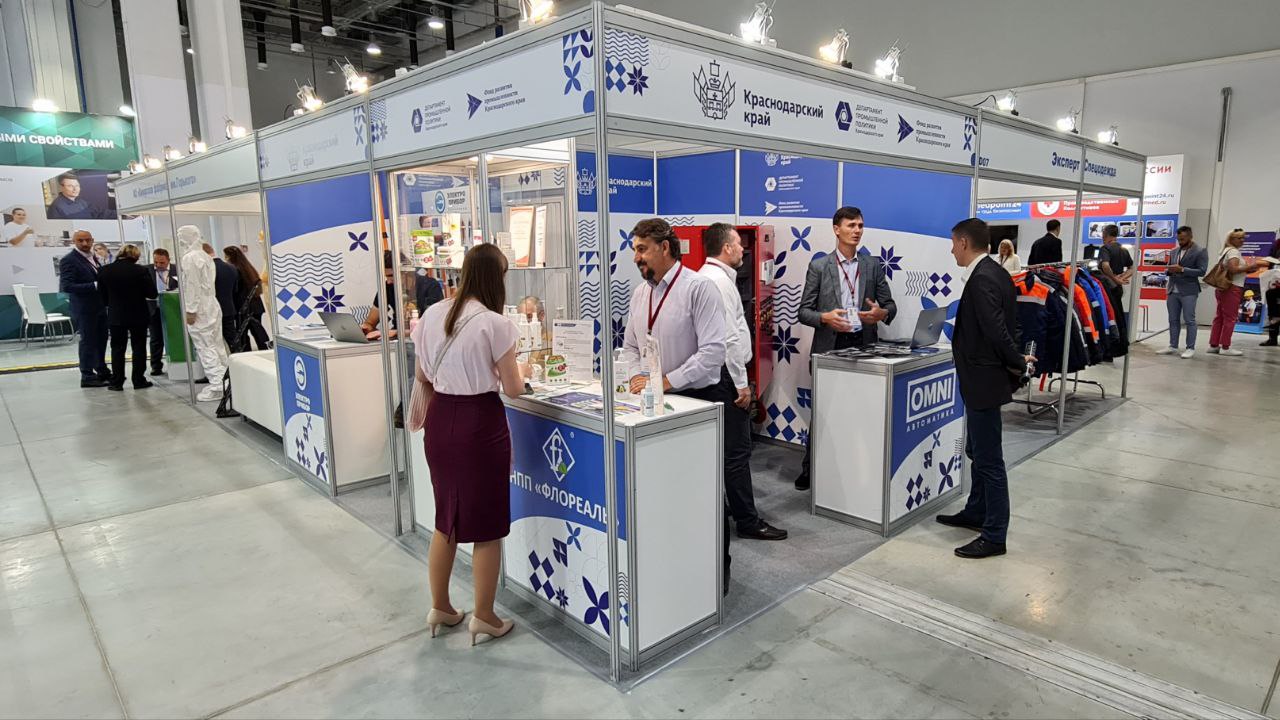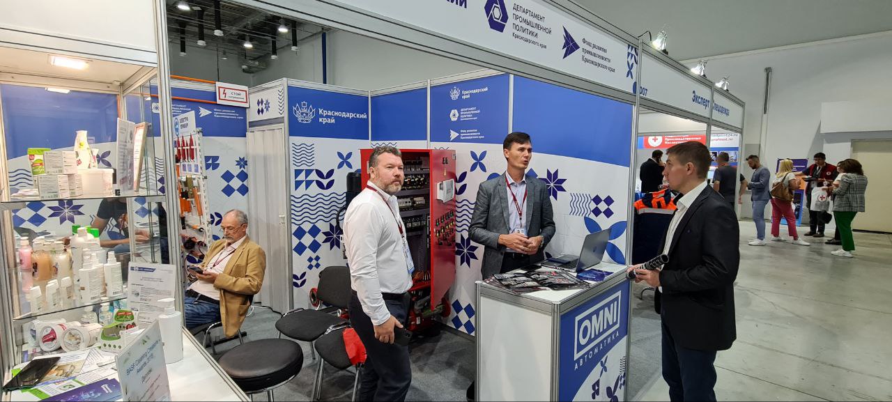 В рамках выставочной экспозиции на коллективном стенде Краснодарского края свою продукции представили 3 промышленных предприятия: компания «ОМНИ Автоматика», предприятие «Флореаль» и «Электроприбор». Производители презентовали насосную установку пожаротушения для систем водяного и пенного пожаротушения, бытовые и профессиональные косметико-гигиенические, дезинфицирующие моющие средства, а также электрозащитные средства и указатели напряжения.