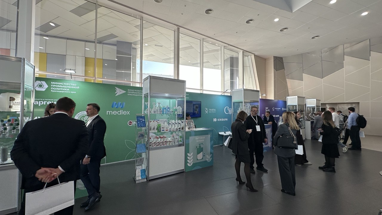 Его проводят с целью наладить связи между представителями химической промышленности и потенциальными партнёрами из разных регионов России, показать привлекательность предприятий для федеральных и региональных партнёров, а также инвесторов.На площадке выставки форума на стенде Краснодарского края, который организовали министерство промышленной политики и Фонд развития промышленности региона, продукцию представляют 1️⃣6️⃣ компаний. Это производители органических удобрений, средств для защиты растений, гранул из пластика, дезинфицирующих и моющих средств, растворов для инфузий в мягких контейнерах, антисептиков, медицинских изделий, парфюмерии и косметики, минеральных порошков и многого другого.