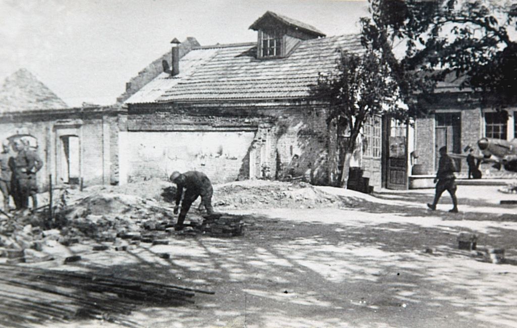 Немецко-фашистские войска во время оккупации города варварски разрушили цеха завода возле аэродрома, а также ряд производственных помещений на городской территории. Требовалось срочно восстановить корпуса мастерских и приступить к ремонту авиационной техники. Командование мастерских, трудовой коллектив осознавали все трудности решения больших и сложных задач и принимали конкретные меры по скорейшему восстановлению мастерских и оснащению цехов необходимым оборудованием.