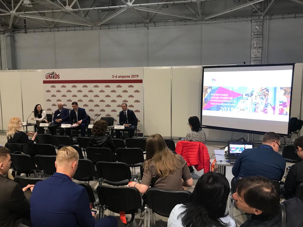 В рамках деловой программы, на совещании – конференции "Реализация потенциала роста продаж мебели через участие в государственных и частных закупках" с докладом "Меры государственной поддержки промышленных предприятий Краснодарского края, предоставляемые Фондом развития промышленности Краснодарского края" выступил директор Фонда Дмитрий Королев. Он рассказал, какие программы заемного финансирования работают сегодня в Фонде. Для профильных предприятий участников выставки, относящимся к деревообрабатывающей промышленности, разработана программа "Приоритет", которая позволяет взять льготный займ на сумму от 3 до 30 млн. рублей сроком до 36 месяцев с процентной ставкой 1-3 % годовых.