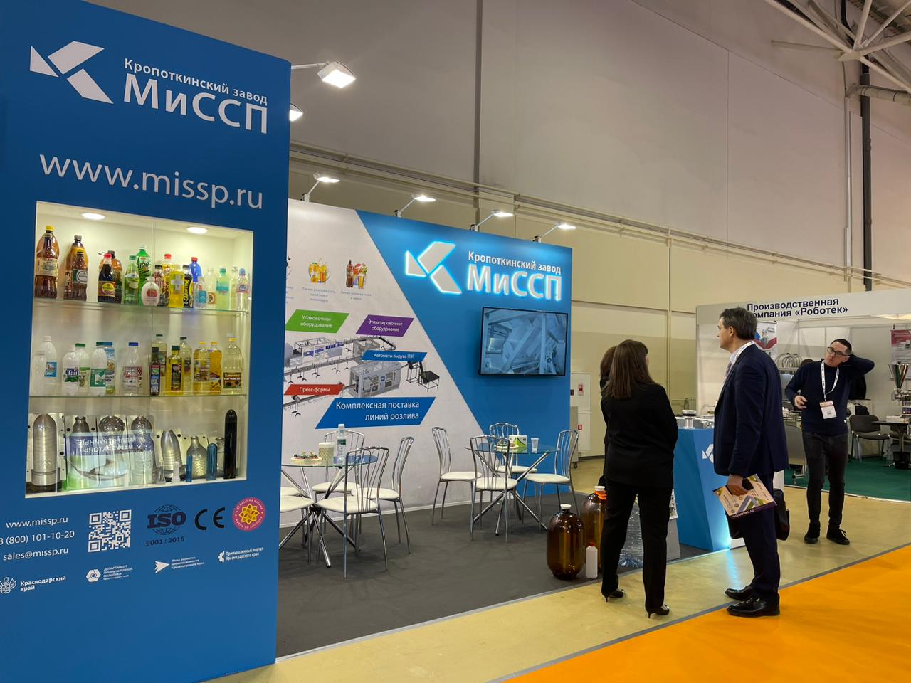 Компания «КубРотоПак» демонстрирует широкий ассортимент тары для пищевых продуктов, бытовой химии и средств гигиены, товаров для животных, а также представляет рулонный упаковочный материал и готовые пакеты. Производитель «Энергоизол» презентует образцы упаковки из вспененного полиэтилена. Кропоткинский завод МиССП – производитель линейных автоматов выдува ПЭТ-тары и технологического оборудования для автоматических линий розлива и упаковки продуктов в ПЭТ представляет образцы пресс‑форм для изготовления пластиковых бутылок.