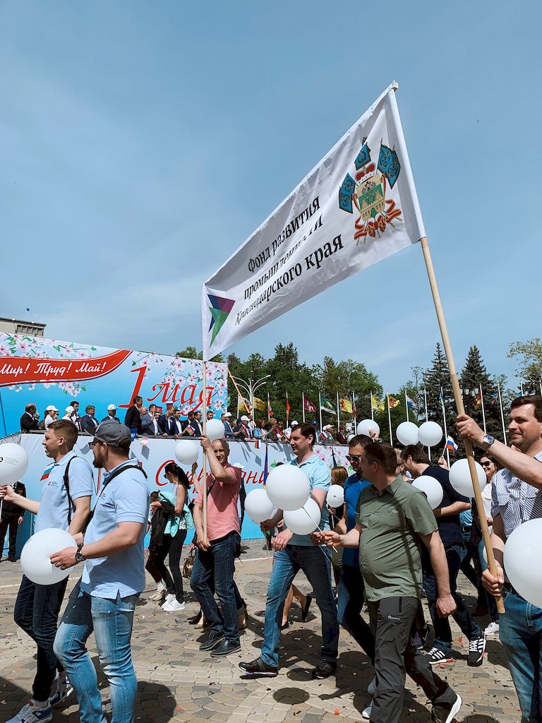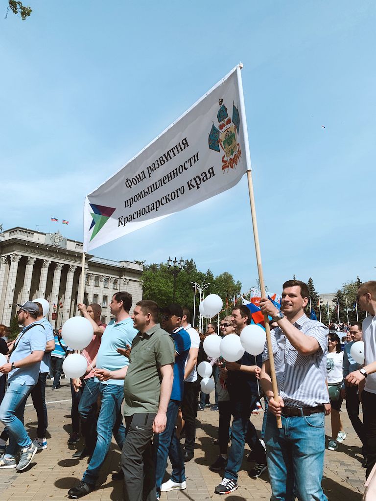 Участники первомайского шествия несли флаги, транспаранты, воздушные шары и цветы. Традиционно основные лозунги праздника - единство, солидарность и права трудящихся. Все трудовые коллективы были построены в соответствии с причастностью к реализации нацпроектов. "Фондом развития промышленности Краснодарского края совместно с Департаментом промышленной политики и Министерством экономики Краснодарского края реализуется национальный проект "Повышение производительности труда". Специалистами Фонда, в рамках данного проекта до 2024 года, порядка 70-130 предприятиям промышленности Краснодарского края будет оказана адресная поддержка для повышения производительности труда на 30%" - отметил директор Фонда Дмитрий Королев.