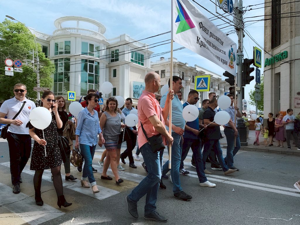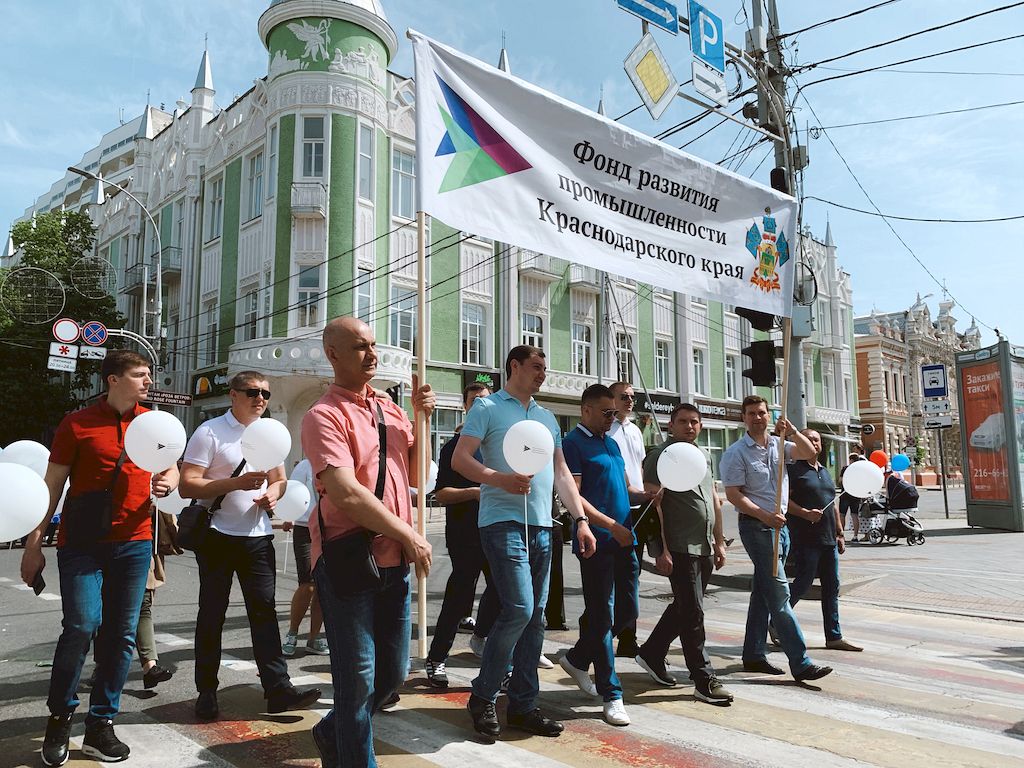 В первомайском шествии приняли участие сотрудники Фонда развития промышленности Краснодарского края. Праздничная первомайская колонна стартовала в 10.00 и прошла по ул. Красной от ул. им. Ленина до ул. Постовой.