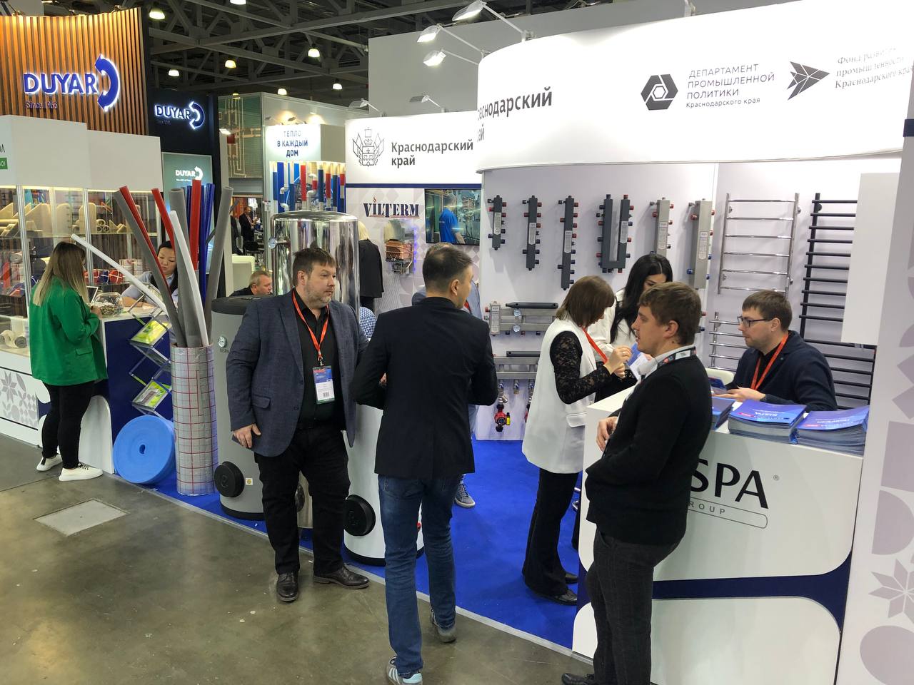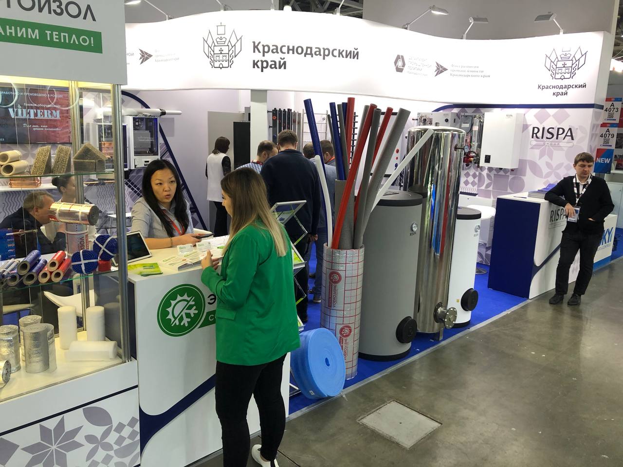В частности, на стенде Кубани свою продукцию и запчасти для теплового оборудования представляет Армавирский завод газового оборудования «ЮгЭнергоПром». Это единственное в России предприятие, где производят водонагреватели по полному циклу. Широкий ассортимент инженерной сантехники демонстрирует компания «Сантехгаз» из Армавира. Предприятие выпускает технику под собственными торговыми марками «Rispa» и «Термодизайн». Завод по производству теплоизоляционных материалов и упаковки «Энергоизол» Усть-Лабинского района демонстрирует материалы на основе вспененного полиэтилена.